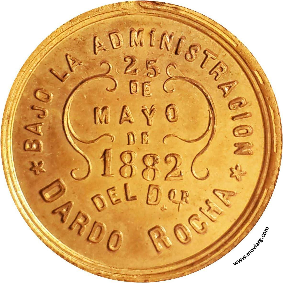 Anverso: INAUGURACION DEL FERRO-CARRIL / Á / ARRECIFES Reverso: BAJO LA ADMINISTRACION / DEL DOR. / DARDO ROCHA / 25 / DE / MAYO / DE / 1882 Referencia: | |