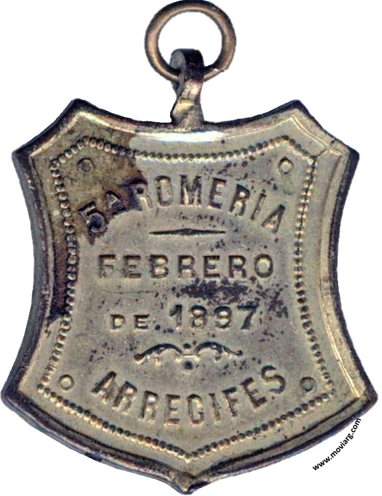 Anverso: ROMERIAS / ESPAÑOLAS. Firma: ORZALI B. Y C. Reverso: 5A. ROMERIA / FEBRERO / DE 1897 / ARRECIFES Referencia: | |