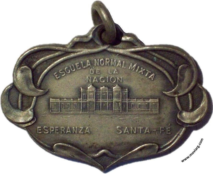 Anverso: ESCUELA NORMAL MIXTA / DE LA / NACION / ESPERANZA SANTA-FÉ Reverso: COLOCACION / DE LA / PIEDRA FUNDAMENTAL / SEPTIEMBRE 8 DE 1904. Firma: F. COSTA Referencia: | |
