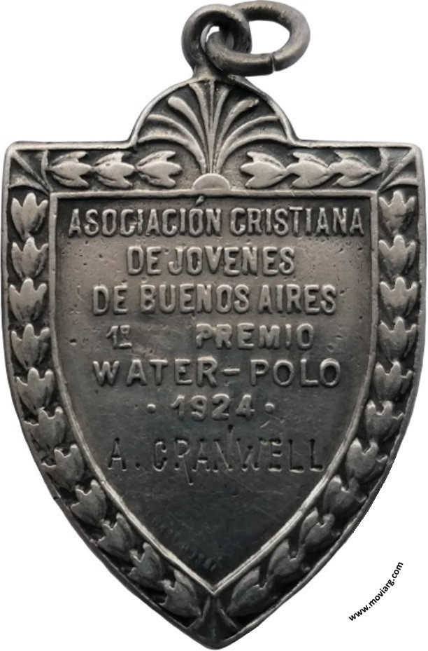 Anverso: ALMA / MENTE / CUERPO Reverso: ASOCIACIÓN CRISTIANA / DE JOVENES / DE BUENOS AIRES / 1R. PREMIO / WATER-POLO / 1924 / [ A. CRANWELL ]. Firma: CONST. ROSSI Referencia: | |