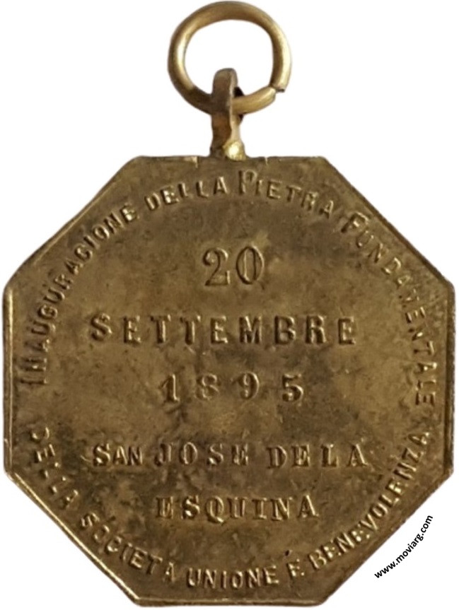 Anverso: Reverso: INAUGURACIONE (sic) DELLA PIETRA FUNDAMENTALE (sic) / DELLA SOCIETA UNIONE É BENEVOLENZA / 20 / SETTEMBRE / 1895 / SAN JOSÉ DE LA / ESQUINA Referencia: | |