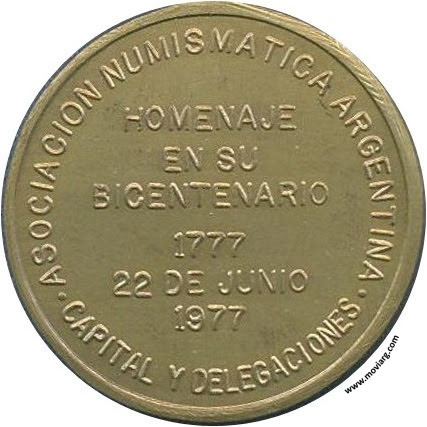 rosfil1 Anverso: ALMIRANTE GUILLERMO BROWN. Firma: SUC. J. F. PIANAReverso: ASOCIACION NUMISMATICA ARGENTINA / CAPITAL Y DELEGACIONES / HOMENAJE / EN SU / BICENTENARIO / 1777 / 22 DE JUNIO / 1977 Referencia: | |