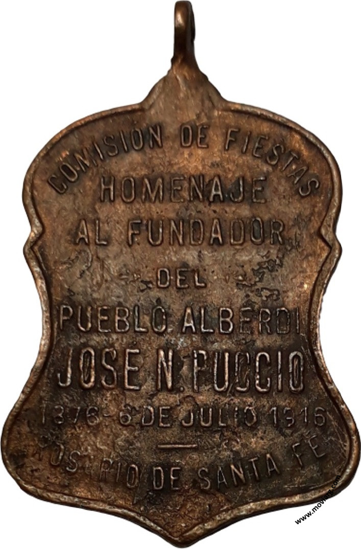 Colección MDS Anverso: PRIMER CENTENARIO DE LA INDEPENDENCIA / 1816 - 9 DE JULIO 1916 / PIEDRA FUNDAMENTAL / MONUMENTO J. B. ALBERDIReverso: COMISIÓN DE FIESTAS / HOMENAJE / AL FUNDADOR / DEL / PUEBLO ALBERDI / JOSÉ N. PUCCIO / 1876 - 6 DE JULIO 1916 / ROSARIO DE SANTA FE Referencia: | |