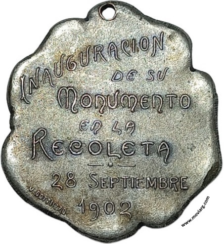 Anverso: JUAN B. / ALBERDI / 1810 / 1884 Reverso: INAUGURACION / DE SU / MONUMENTO / EN LA / RECOLETA / 28 SEPTIEMBRE / 1902. Firma: J. GOTTUZZO Referencia: | |