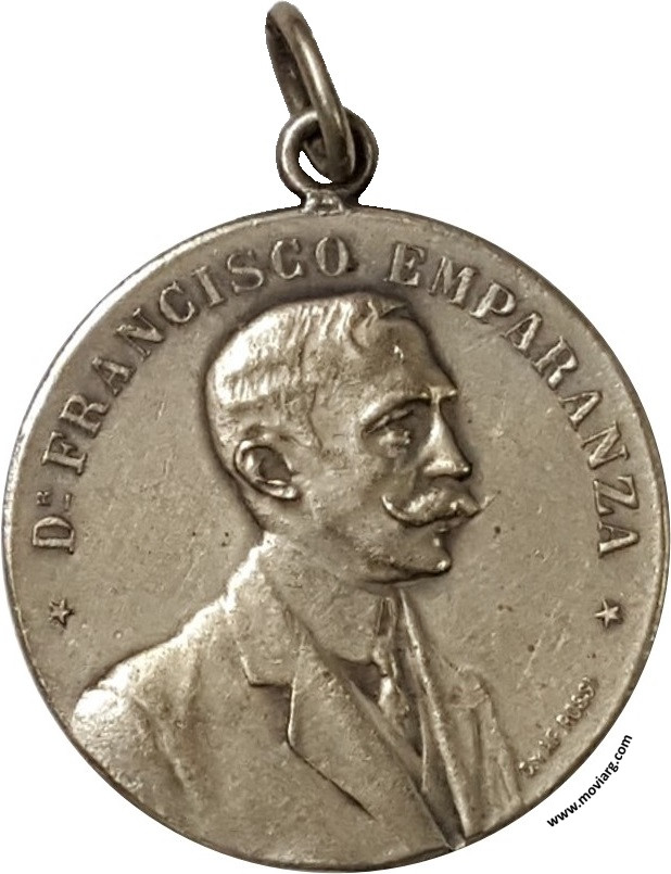 Anverso: DR. FRANCISCO EMPARANZA. Firma: C. Y AF. ROSSI Reverso: EL PUEBLO / DEL / SALADILLO / Á SU / EX - INTENDENTE / Y OBRERO INFATIGABLE / DE SU PROGRESO / 1911 Referencia: | |