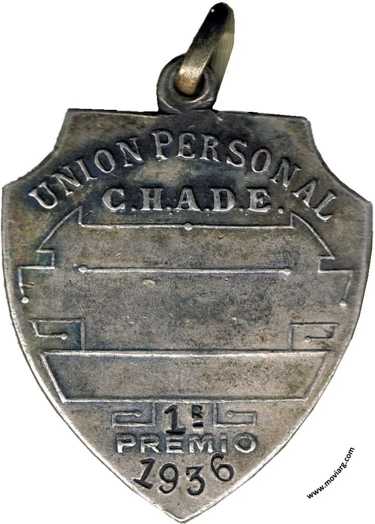 Anverso: Campo: U / P / C Reverso: UNION PERSONAL / C.H.A.D.E. / [ 1R. ] / PREMIO / [ 1936 ] Referencia: | |