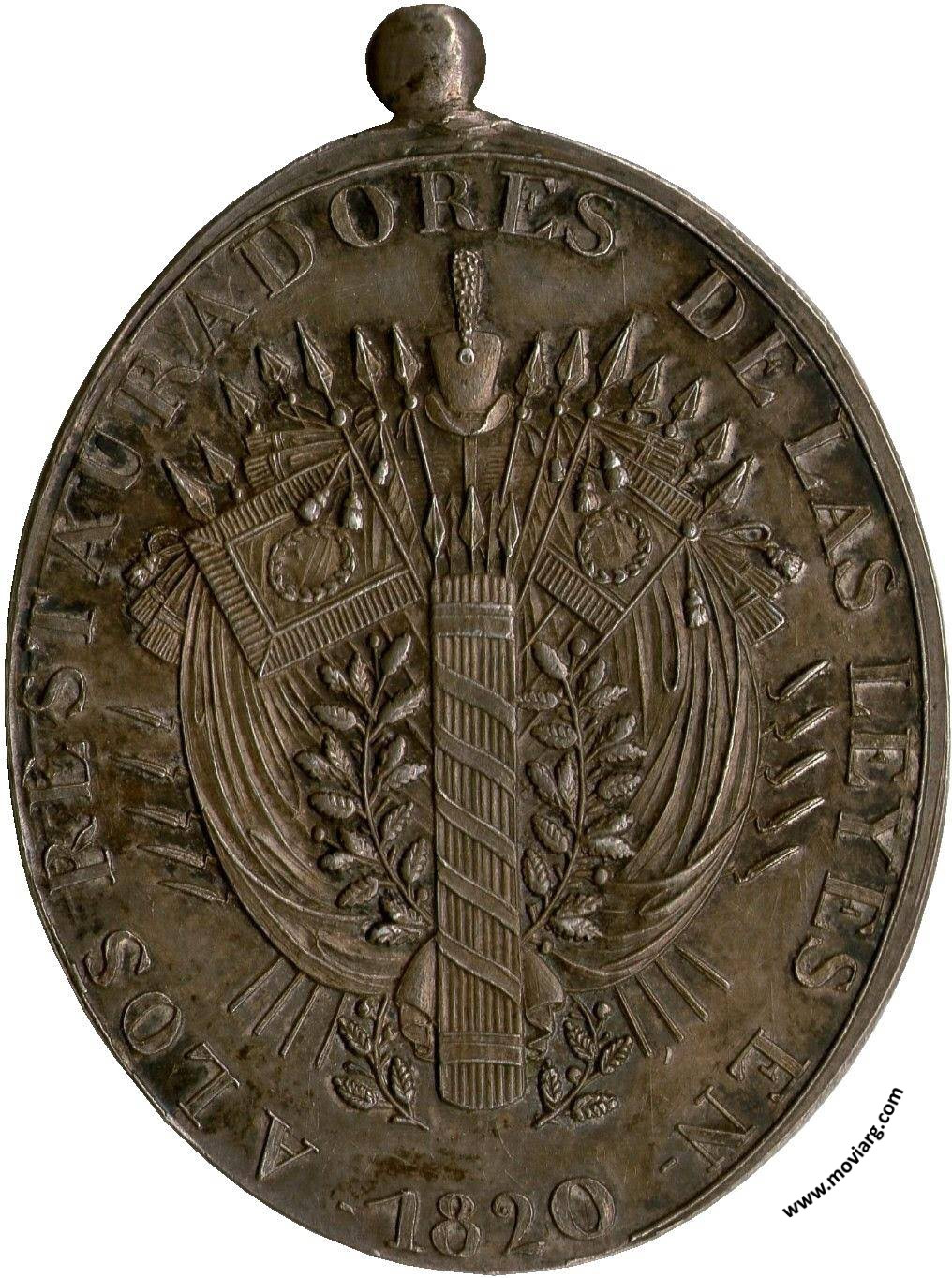 | Año: 1820 Medallas Militares Metal: Plata - Peso: 15.7gr - Módulo: 37x30mm - Rotación: 12hrs Grabador: (José Massias) | |