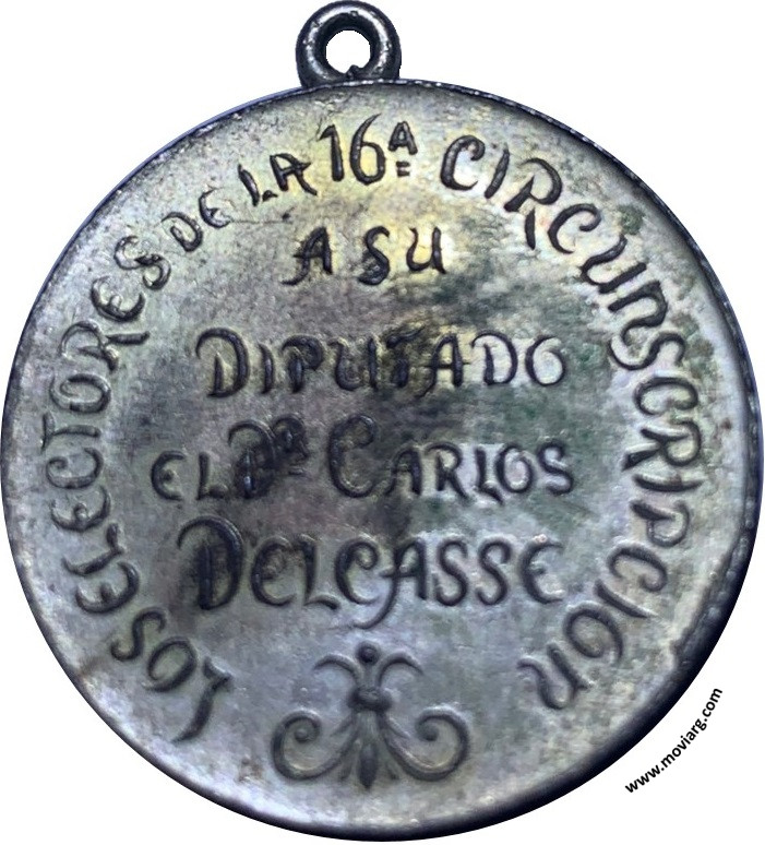 Colección Magnin Anverso: MARZO 13 / 1904Reverso: LOS ELECTORES DE LA 16A. CIRCUNSCRIPCION / A SU / DIPUTADO / EL DR. CARLOS / DELCASSE Referencia: | |