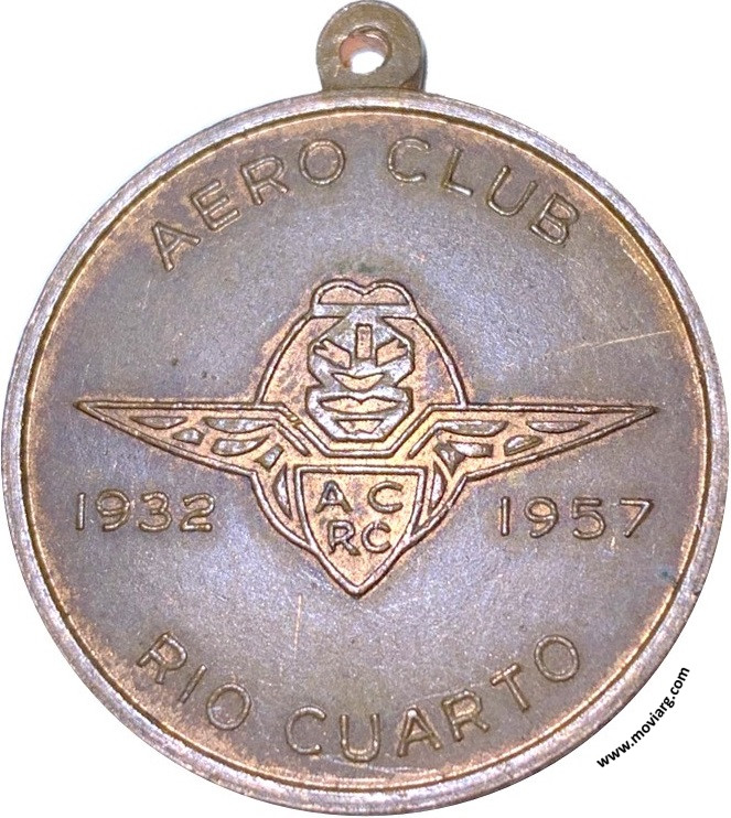 Colección Magnin Anverso: AERO CLUB / RIO CUARTO / 1932 / 1957. Campo: A. C. / R. C.Reverso: CONGRESO / AERONAUTICO / NACIONAL / BODAS DE PLATA / 22 DICIEMBRE 1957 Referencia: | |