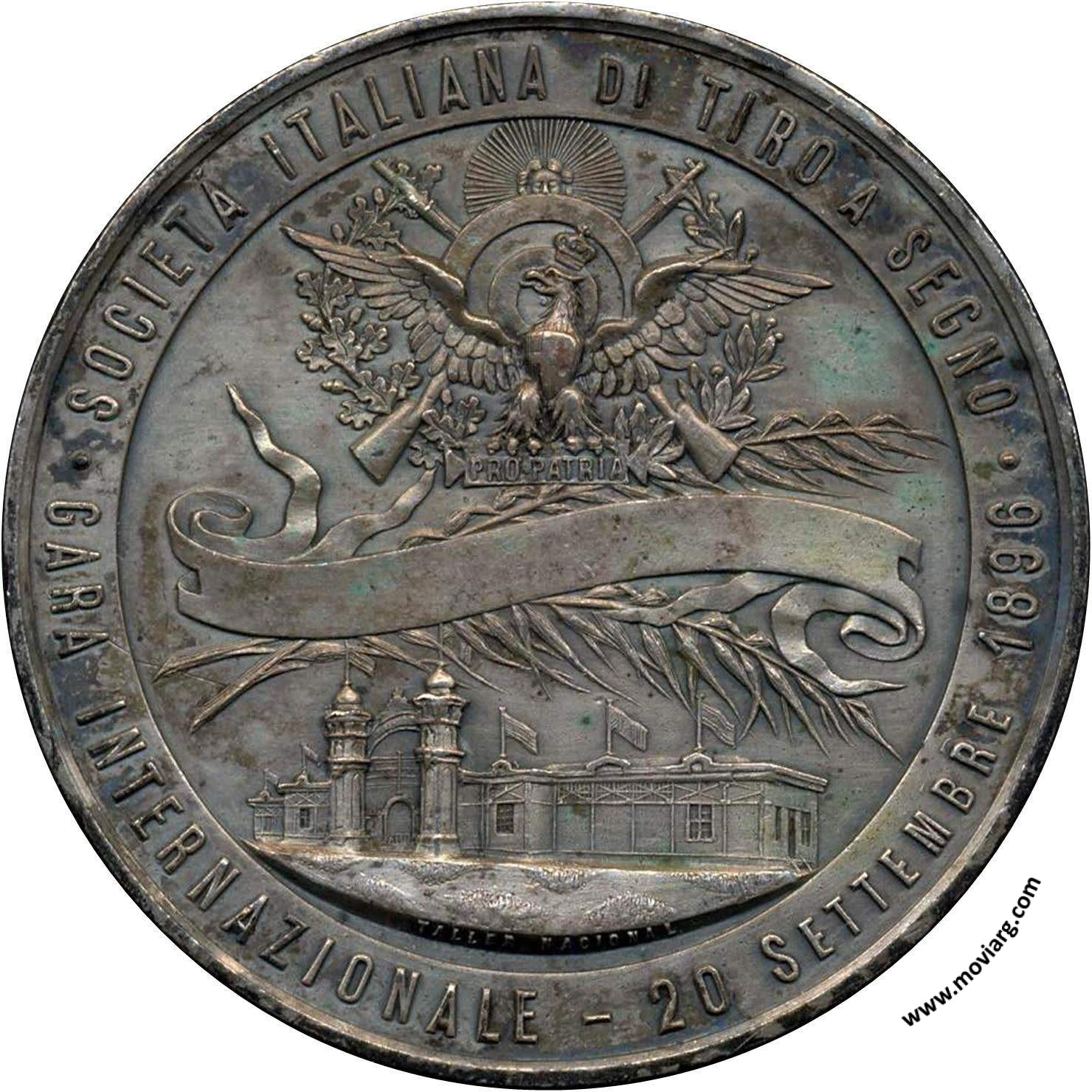 Anverso: SOCIETÁ ITALIANA DI TIRO A SEGNO / GARA INTERNAZIONALE - 20 SETTEMBRE 1896. Campo: PRO PATRIA. Firma: TALLER NACIONAL Reverso: VICTORIA FORTIBUS. Campo: PATRIA Referencia: | |