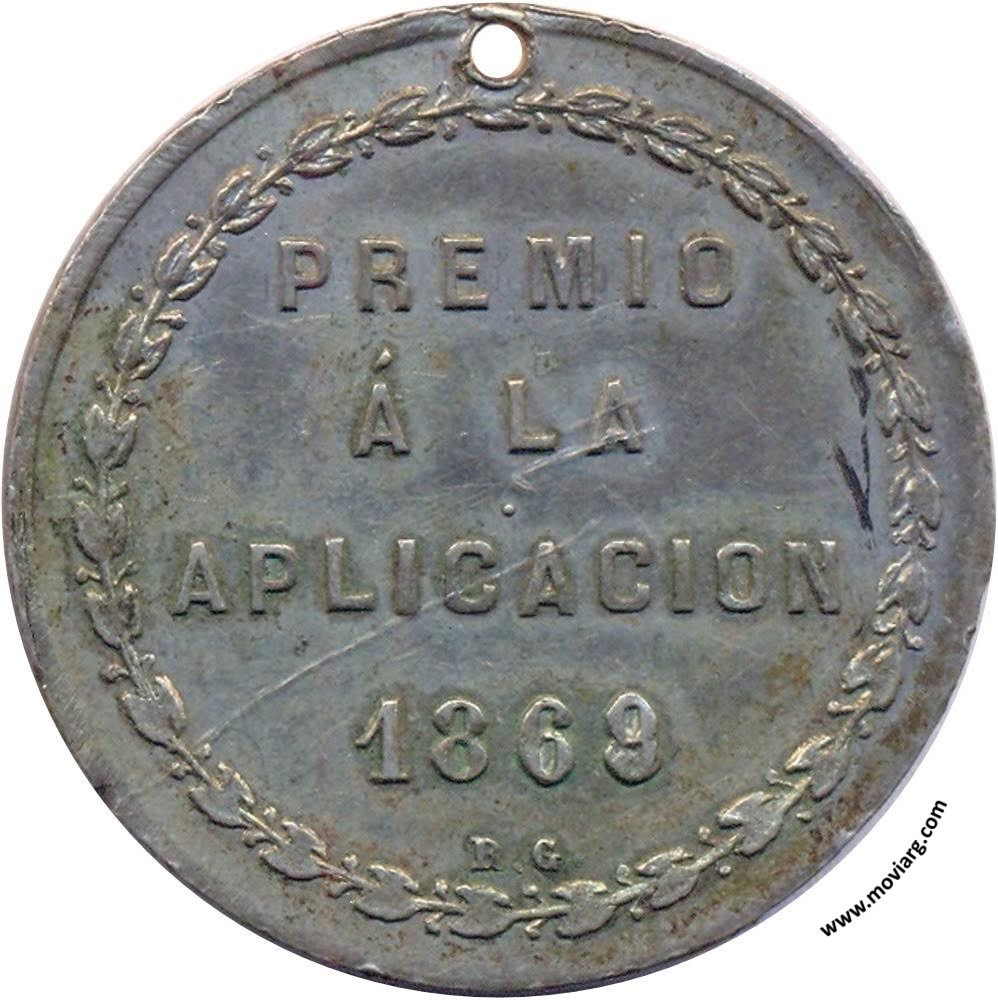 Anverso: MUNICIPALIDAD DE BUENOS AIRES Reverso: PREMIO / Á LA / APLICACION / 1869. Firma: R. G Referencia: | |