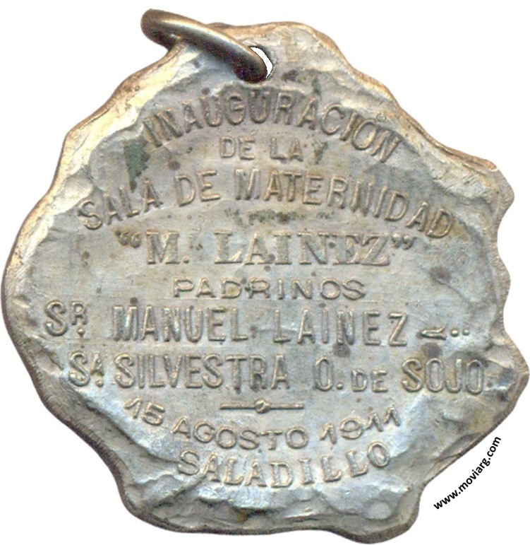 Anverso: MATERNIDAD. Firma: C. Y AF. ROSSI Reverso: INAUGURACION / DE LA / SALA DE MATERNIDAD / " M. LAINEZ " / PADRINOS / SR. MANUEL LAINEZ / SA. SILVESTRA O. DE SOJO / 15 AGOSTO 1911 / SALADILLO Referencia: | |