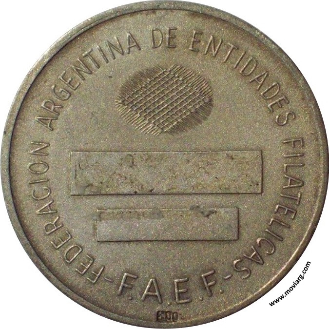 Anverso: EXPOSICION FILATELICA INTERAMERICANA / EFIMAYO 1960 / BUENOS AIRES / REP. ARGENTINA Reverso: FEDERACION ARGENTINA DE ENTIDADES FILATELICA / F.A.E.F. Exergo: [ 800 ] Referencia: | |