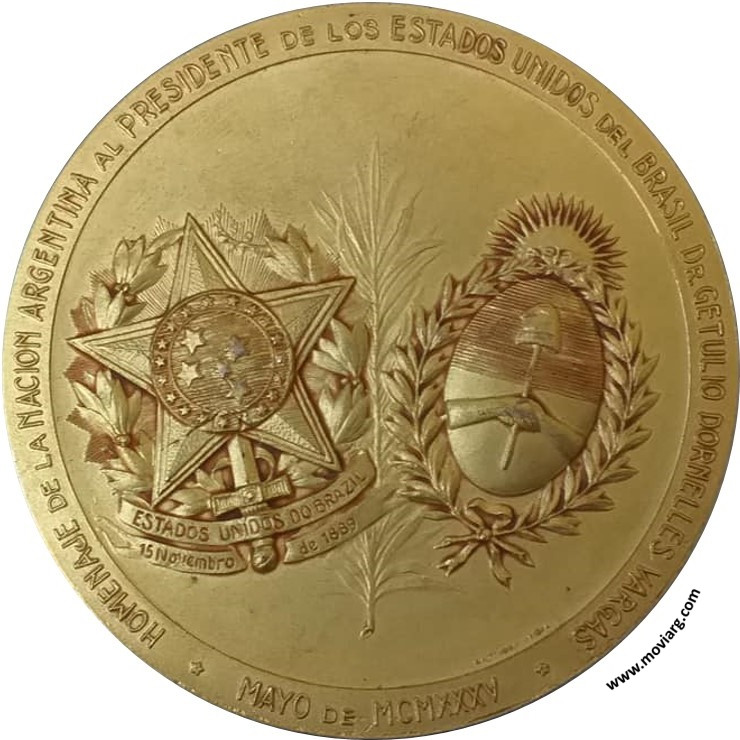 Anverso: Reverso: HOMENAJE DE LA NACION ARGENTINA AL PRESIDENTE DE LOS ESTADOS UNIDOS DEL BRASIL DR. GETULIO DORNELLES VARGAS / MAYO DE MCMXXXV. Campo: ESTADOS UNIDOS DO BRAZIL / 15 NOVEMBRO / DE 1889 Referencia: | |