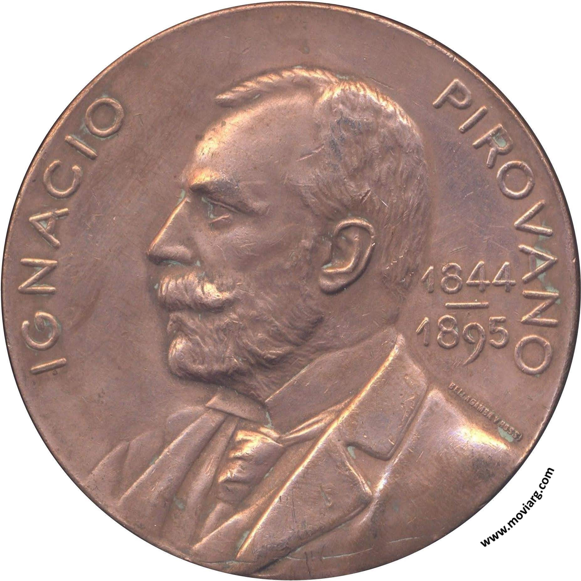Colección MDS Anverso: IGNACIO PIROVANO / 1844 / 1895. Firma: BELLAGAMBA Y ROSSIReverso: INAUGURACION / DE SU / MONUMENTO / 6 DE JULIO / 1900 Referencia: BURZIO-501 | |