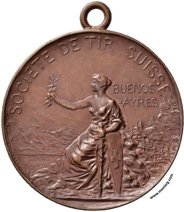 Anverso: SOCIETE DE TIR SUISSE / BUENOS / =AYRES. Firma: GEORGES HANTZ. GENEVE. Reverso: Firma: G.H. Referencia: | |