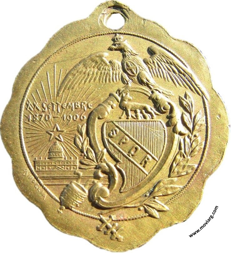 Anverso: XX SETTEMBRE / 1870 - 1906. Firma: SPQR. Firma: A. BIDOGLIA Reverso: SOCIEDAD ITALIANA / DE S.M. / DE / GRAL. BELGRANO Referencia: | |