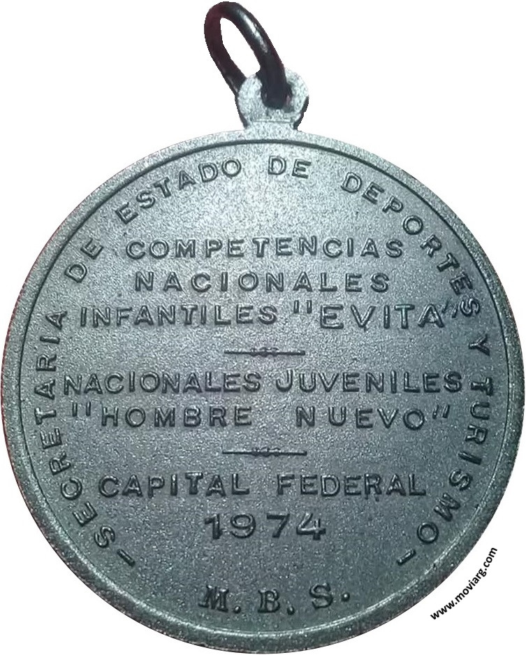 D Alejandro Cymerman Anverso:Reverso: SECRETARIA DE ESTADO DE DEPORTES Y TURISMO / COMPETENCIAS / NACIONALES / INFANTILES " EVITA " / NACIONALES JUVENILES / " HOMBRE NUEVO / CAPITAL FEDERAL / 1974 / M.B.S. Referencia: | |