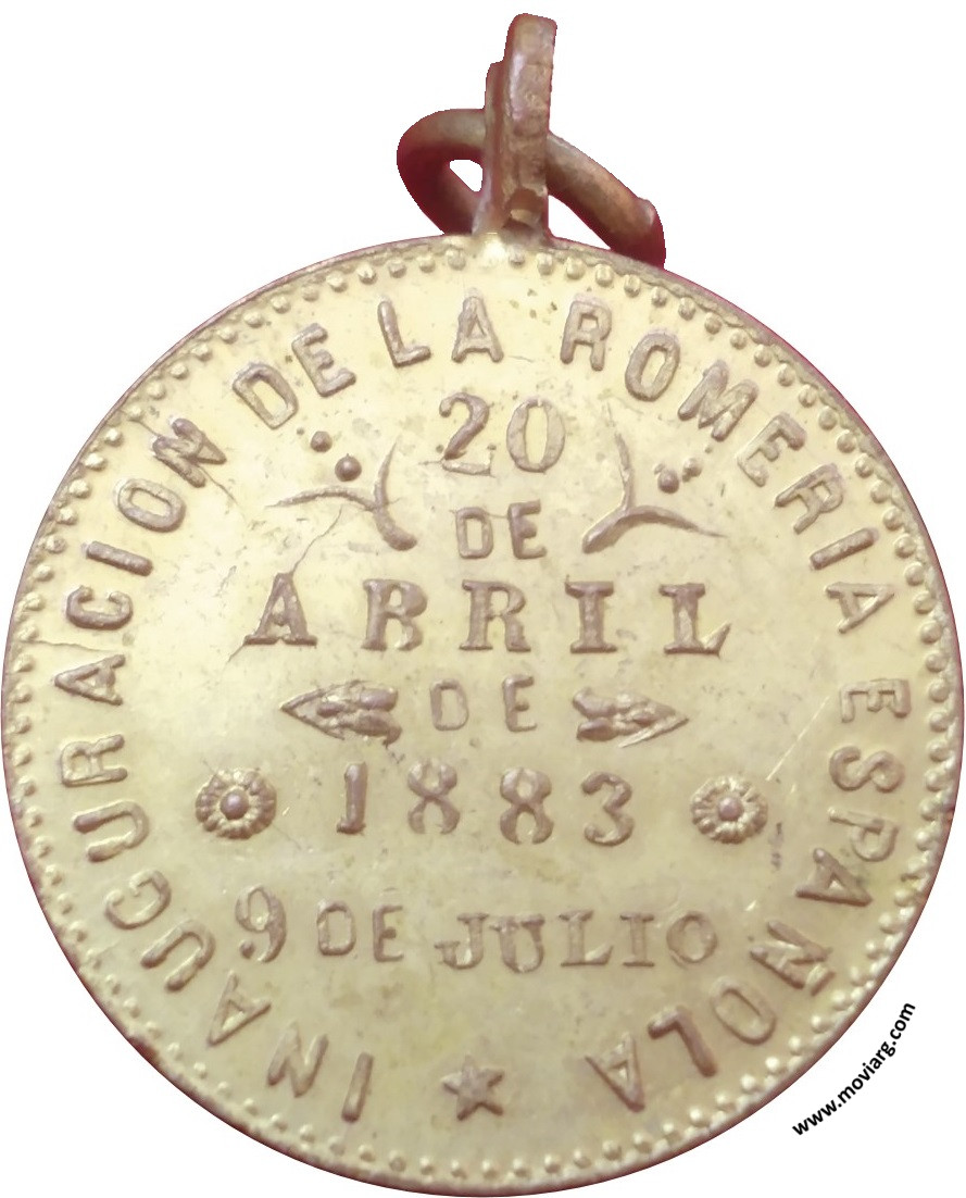 | Año: 1883 Romerías Metal: Bronce - Peso: 5.3gr - Módulo: 23.7mm - Rotación: 12hrs Grabador: Podestá y Hno. (?) | |