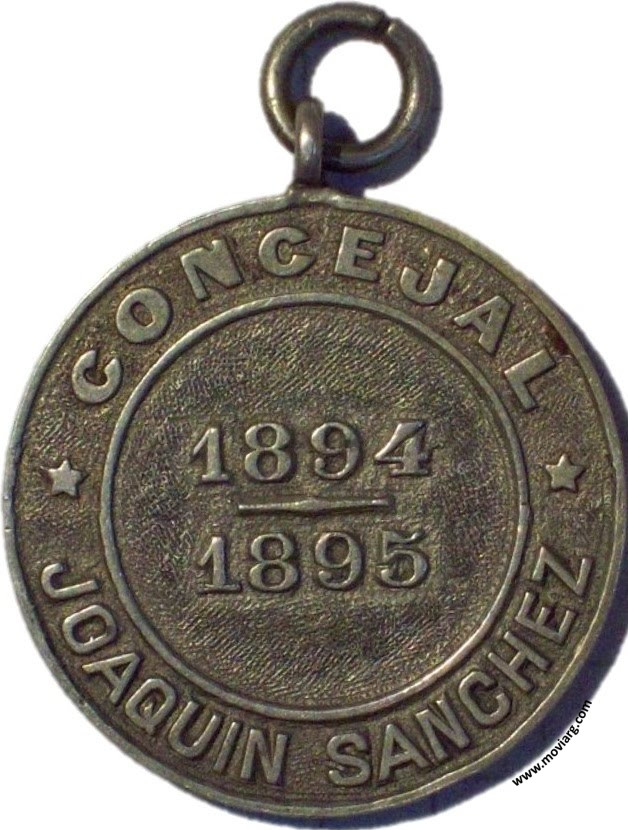 Anverso: MUNICIPALIDAD DE LA CAPITAL / REPÚBLICA ARGENTINA Reverso: CONCEJAL / JOAQUIN SANCHEZ / 1894 / 1895 Referencia: | |