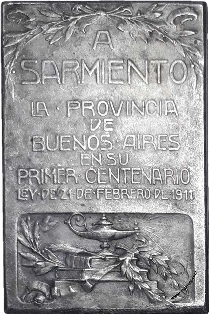 Colección MDS Anverso:Reverso: A / SARMIENTO / LA PROVINCIA / DE / BUENOS AIRES / EN SU / PRIMER CENTENARIO / LEY DE 21 DE FEBRERO DE 1911 Referencia: | |