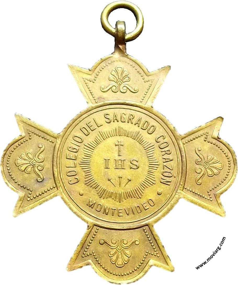 Anverso: COLEGIO SAGRADO CORAZÓN / MONTEVIDEO. Campo: IHS Reverso: AL / MÉRITO. Firma: GOTTUZZO Y PIANA Canto: Liso. Nota Moviarg: Esta variante se encuentra firmada en el reverso por GOTTUZZO Y PIANA, quienes comienzan a firmar con este texto aproximadamente a partir del año 1916 o 1917 siendo la gran mayoría a partir de 1918, por lo cual se asigna el año de esta pieza como (1918). Por este motivo se asignan ambas piezas de este año pero no sería extraño encontrar piezas del (1900) dado que estos premios se solían entregar por varios años consecutivos hasta agotar existencias y luego se pedía una reacuñación. Referencia: | |