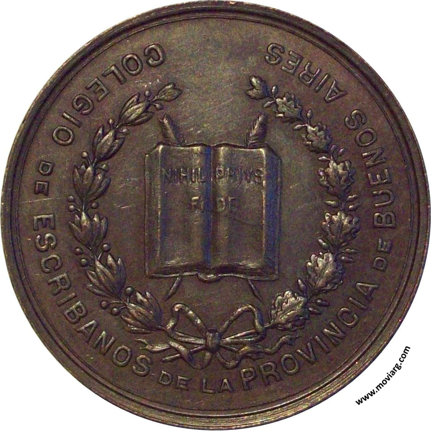 Anverso: COLEGIO DE ESCRIBANOS DE LA PROVINCIA DE BUENOS AIRES. Campo: NIHIL / PRIUS / FIDE Reverso: INAUGURACION / DEL / EDIFICIO SOCIAL / LA PLATA 30 DE MAYO 1896. Firma: ORZALI B. Y C. Referencia: | |