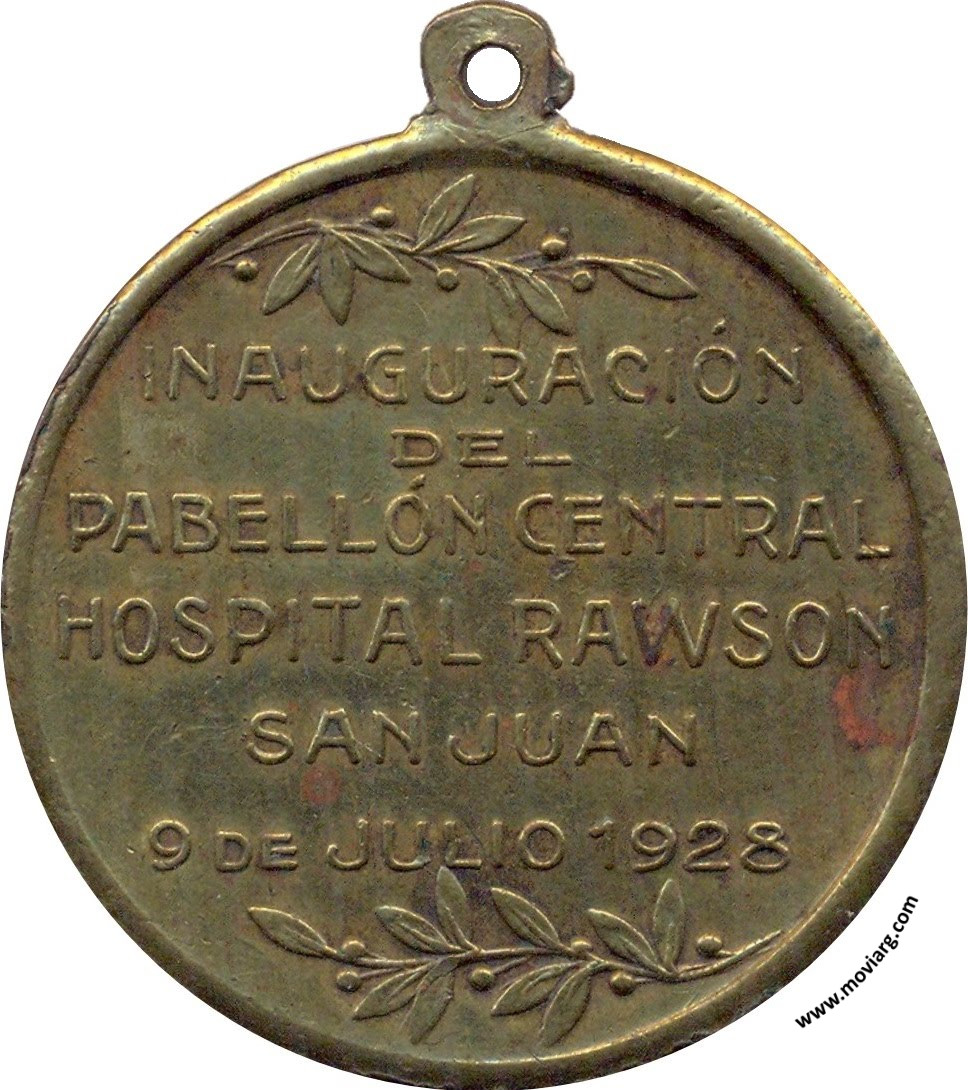 Anverso: GOBIERNO DEL DR. ALDO CANTONI / 1926 - 1929. Firma: GOTTUZZO Y PIANA Reverso: INAUGURACIÓN / DEL / PABELLÓN CENTRAL / HOSPITAL RAWSON / SAN JUAN / 9 DE JULIO 1928 Referencia: | |