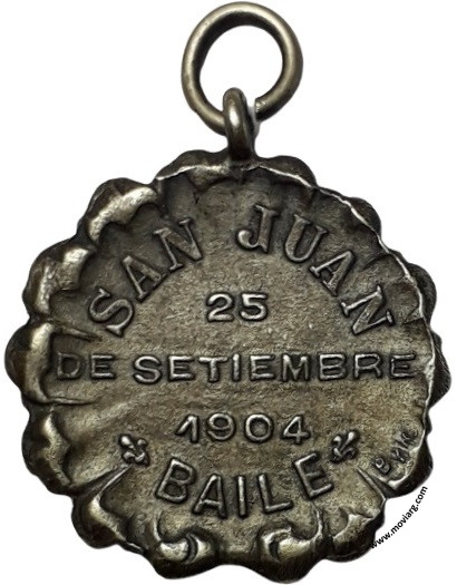 Anverso: INAUGURACION DE LA ESTATUA DE LAPRIDA Reverso: SAN JUAN / 25 / DE SETIEMBRE / 1904 / BAILE. Firma: B. Y R. Referencia: | |