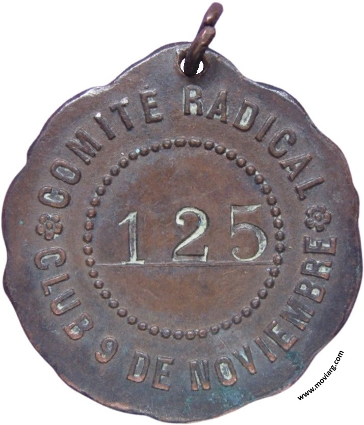 Anverso: Reverso: COMITÉ RADICAL / CLUB 9 DE NOVIEMBRE / [ 125 ] Referencia: | |