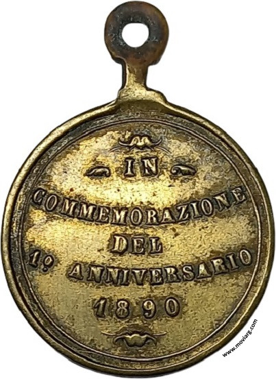 | Año: 1890 Sociedad Italiana Metal: Cobre - Peso: 4.84gr - Módulo: 23.83mm - Espesor: 1.9mm - Rotación: 12hrs Grabador: (Rosario Grande) | |