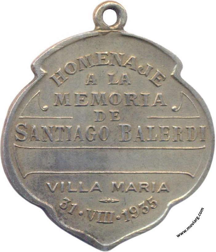 Anverso: Firma: A. LELEU Reverso: HOMENAJE / A LA / MEMORIA / DE / SANTIAGO BALERDI / VILLA MARIA / 31 · VIII · 1935 Referencia: | |