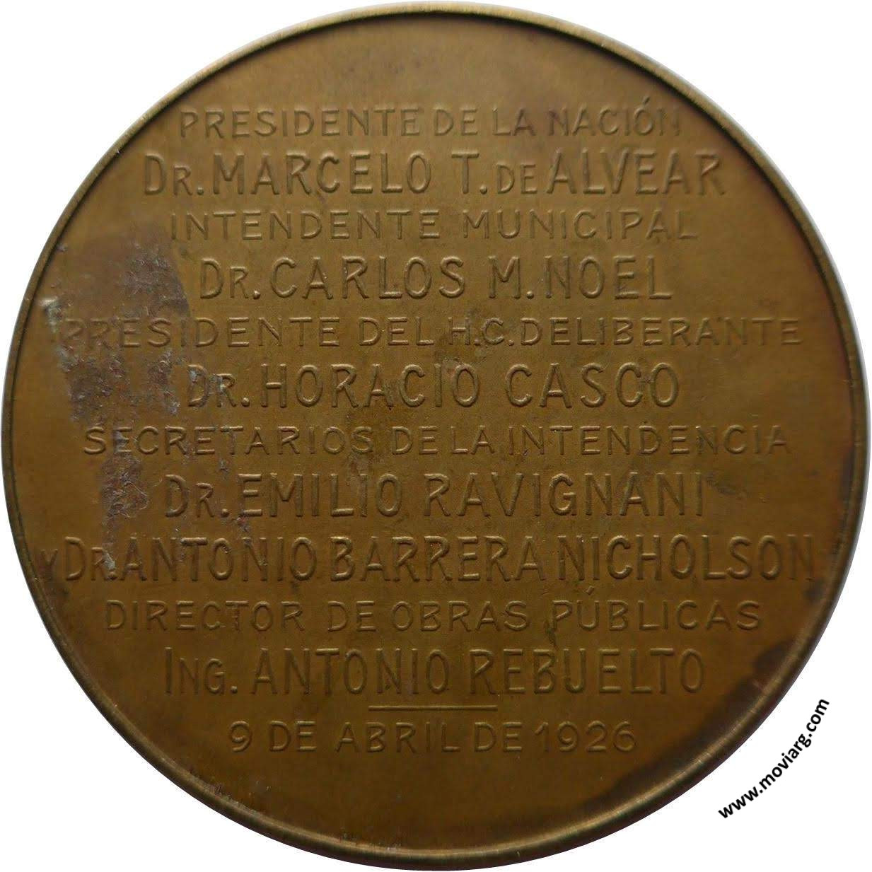Anverso: MUNICIPALIDAD DE BUENOS AIRES / AVENIDA PARRAL. Firma: J. M. LUBARY Reverso: PRESIDENCIA DE LA NACIÓN / DR. MARCELO T. DE ALVEAR / INTENDENTE MUNICIPAL / DR. CARLOS M. NOEL / PRESIDENTE DEL H.C. DELIBERANTE / DR. HORACIO CASCO / SECRETARIOS DE LA INTENDENCIA / DR. EMILIO RAVIGNIANI / DR. ANTONIO BARRERA NICHOLSON / DIRECTOR DE OBRAS PÚBLICAS / ING. ANTONIO REBUELTO / 9 DE ABRIL DE 1926 Referencia: | |