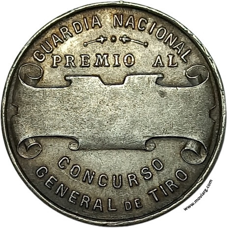 Anverso: EL GOBIERNO DE LA PROVINCIA DE MENDOZA Reverso: GUARDIA NACIONAL / PREMIO AL / CONCURSO / GENERAL DE TIRO Referencia: | |