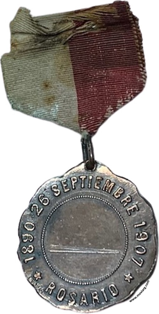 Anverso: CLUB CAPITAN ELOY BRIGNARDELLO / U.C.R. Reverso: 1890 · 26 SEPTIEMBRE 1907 / ROSARIO. Firma: M. VANZO Referencia: | |