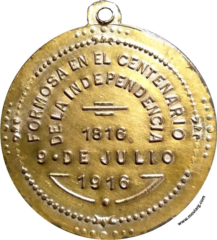 Anverso: 1816 / 9 DE JULIO / 1916. Firma: HORTA Reverso: FORMOSA EN EL CENTENARIO / DE LA INDEPENDENCIA / 1816 / 9 DE JULIO / 1916 Referencia: | |