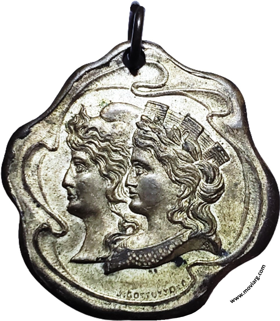 | Año: 1914 Romerías Metal: Plateado - Peso: 12.13gr - Módulo: 30.66x33.26mm - Espesor: 1.9mm - Rotación: 12hrs Grabador: Juan Gottuzzo y Ca. | |