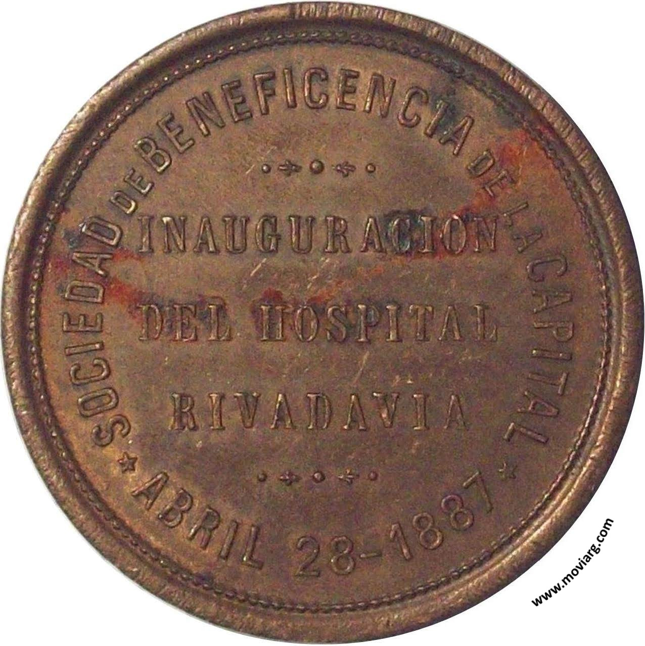 Anverso: BAJO LA PRESIDENCIA DEL DR. / MIGUEL JUAREZ CELMAN Reverso: SOCIEDAD DE BENEFICENCIA DE LA CAPITAL / INAUGURACION / DEL HOSPITAL / RIVADAVIA / ABRIL 28 - 1887 Referencia: BURZIO-2225 ROSA-/110 | |