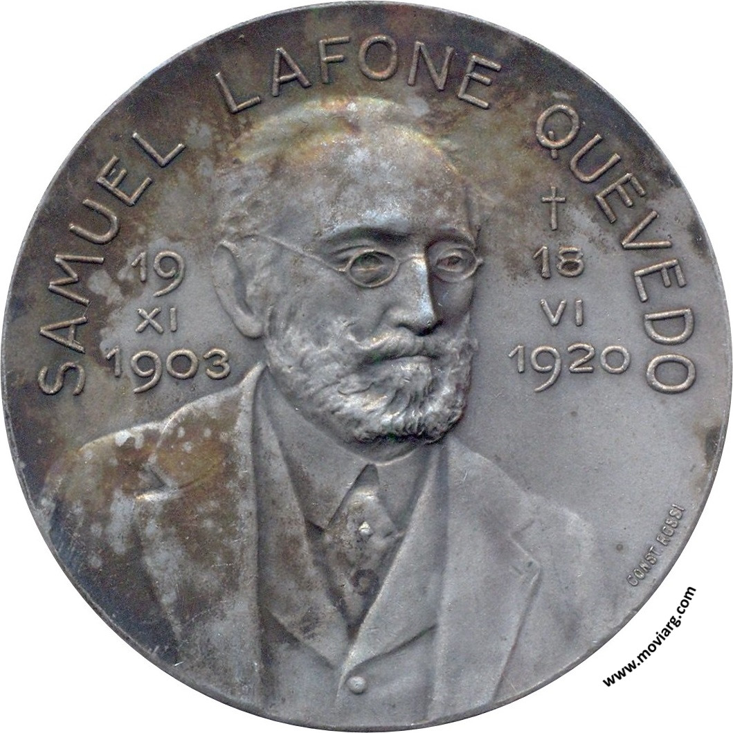 Anverso: SAMUEL LAFONE QUEVEDO / 19 / XI / 1903 / 18 / VI / 1920. Firma: CONST. ROSSI Reverso: MIEMBRO DE LA JUNTA DE HISTORIA Y NUMISMÁTICA AMERICANA / BUENOS AIRES. Campo: LUCEM QUÆRIMUS. Firma: BELLAGAMBA Y ROSSI Referencia: | |