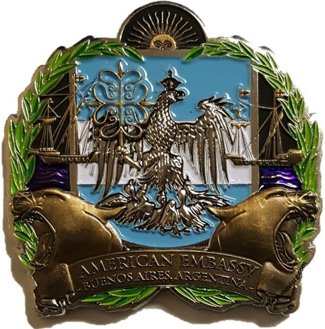 Anverso: AMERICAN EMBASSY / BUENOS AIRES, ARGENTINA Reverso: MARINE SECURITY / GUARD DETACHMENT. Campo: DEPARTMENT OF STATE / UNITED STATES OF AMERICA / SEMPER FIDELIS Referencia: | |