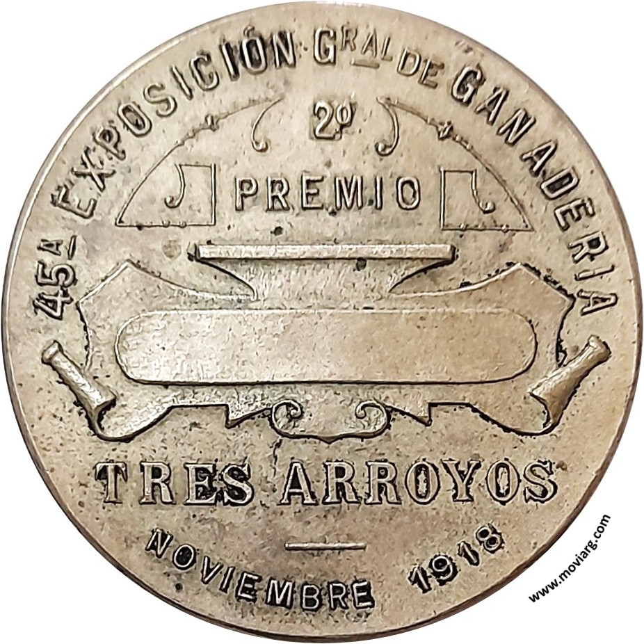 Anverso: Firma: CONSTANTE ROSSI Reverso: 45A. EXPOSICIÓN GRAL. DE GANADERIA / TRES ARROYOS / NOVIEMBRE 1918 / 2° / PREMIO Referencia: | |