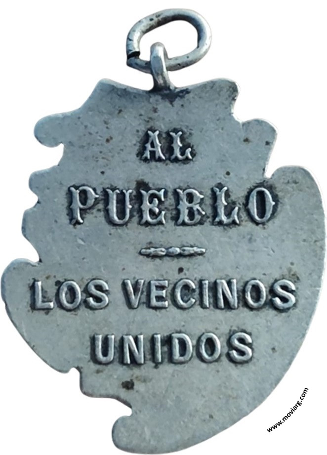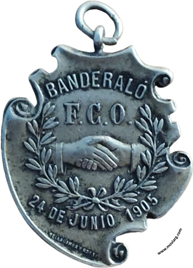 Anverso: BANDERALÓ / F.C.O. (Ferrocarril Oeste) / 24 DE JUNIO 1905. Firma: BELLAGAMBA Y ROSSI Reverso: AL / PUEBLO / LOS VECINOS / UNIDOS Referencia: | |