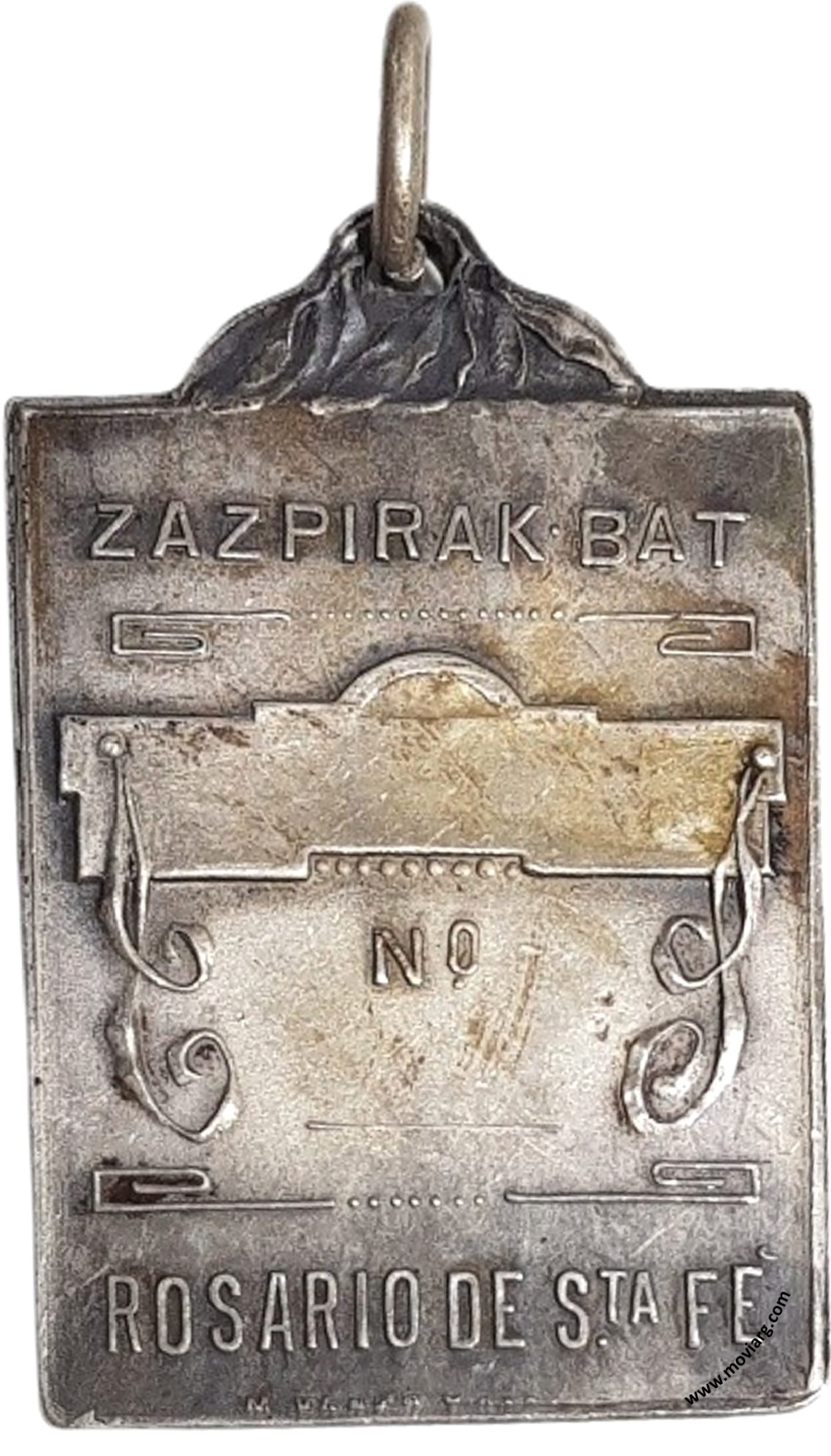 Anverso: Campo: EUZKADI / ARABA / BIZKAYA / GIPUZKOA / ZEGUERRAI / (???). Firma: MF(???) Reverso: ZAZPIRAK · BAT ("Las Siete, Una" lema creado a finales del siglo XIX) / N° / ROSARIO DE STA. FÉ. Firma: M. VANZO Y CIA. Referencia: | |