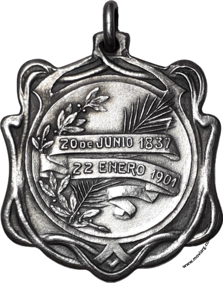 Colección MDS Anverso: Firma: LA MODERNAReverso: 20 DE JUNIO 1837 / 22 ENERO 1901 Canto: Liso. PLATA Nota Moviarg: Si bien la pieza posee el año 1901, la revista "Caras y Caretas" del 1 de Enero de 1906, pp126, menciona que la casa La Moderna abrió 'hace tres años', es decir 1903 aproximadamente, se presume que esta pieza fue acuñada en (1904) aproximadamente. Referencia: | |