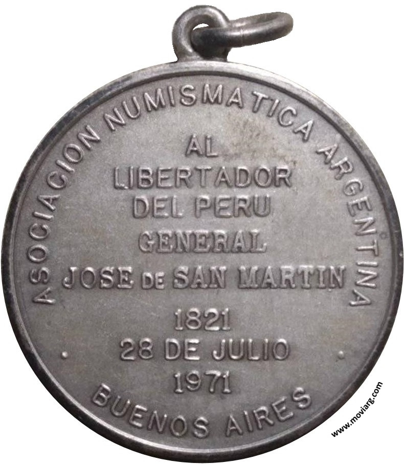 Colección @parryyanumismatico Anverso:Reverso: ASOCIACION NUMISMATICA ARGENTINA / AL / LIBERTADOR / DEL PERU / GENERAL / JOSE DE SAN MARTIN / 1821 / 28 DE JULIO / 1971 / BUENOS AIRES Referencia: | |