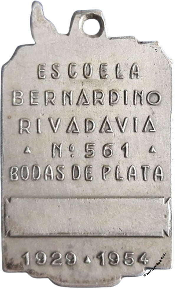 Anverso: Firma: TALL. O. GALLO Reverso: ESCUELA / BERNARDINO / RIVADAVIA / N° 561 / BODAS DE PLATA / 1929 · 1954 Referencia: | |