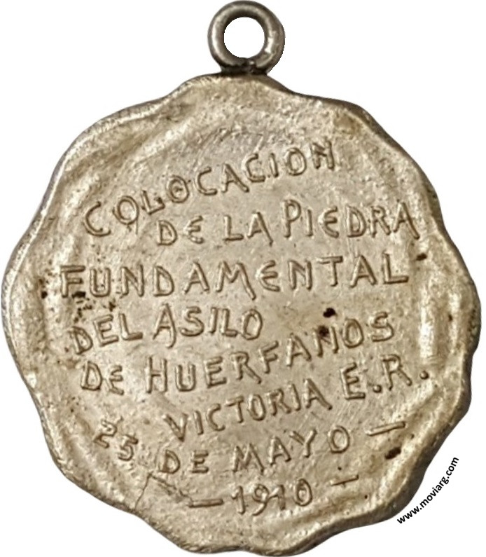 Anverso: APOSTOLADO DE LA ORACION / CENTRO / HOSPITAL. Firma: HORTA Y C. Reverso: COLOCACION / DE LA PIEDRA / FUNDAMENTAL / DEL ASILO / DE HUERFANOS / VICTORIA E. R. / 25 DE MAYO / 1910 Referencia: | |