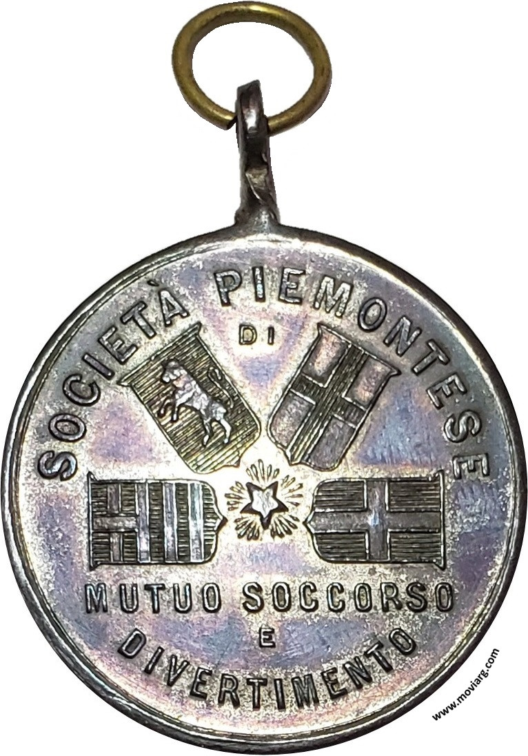 Anverso: SOCIETÀ PIEMONTESE / DI / MUTUO SOCCORSO / E / DIVERTIMENTO Reverso: INAUGURAZIONE E BATTESIMO / DELLA / BANDIERA / SOCIALE / 15 / SETTEMBRE / 1895 Referencia: | |