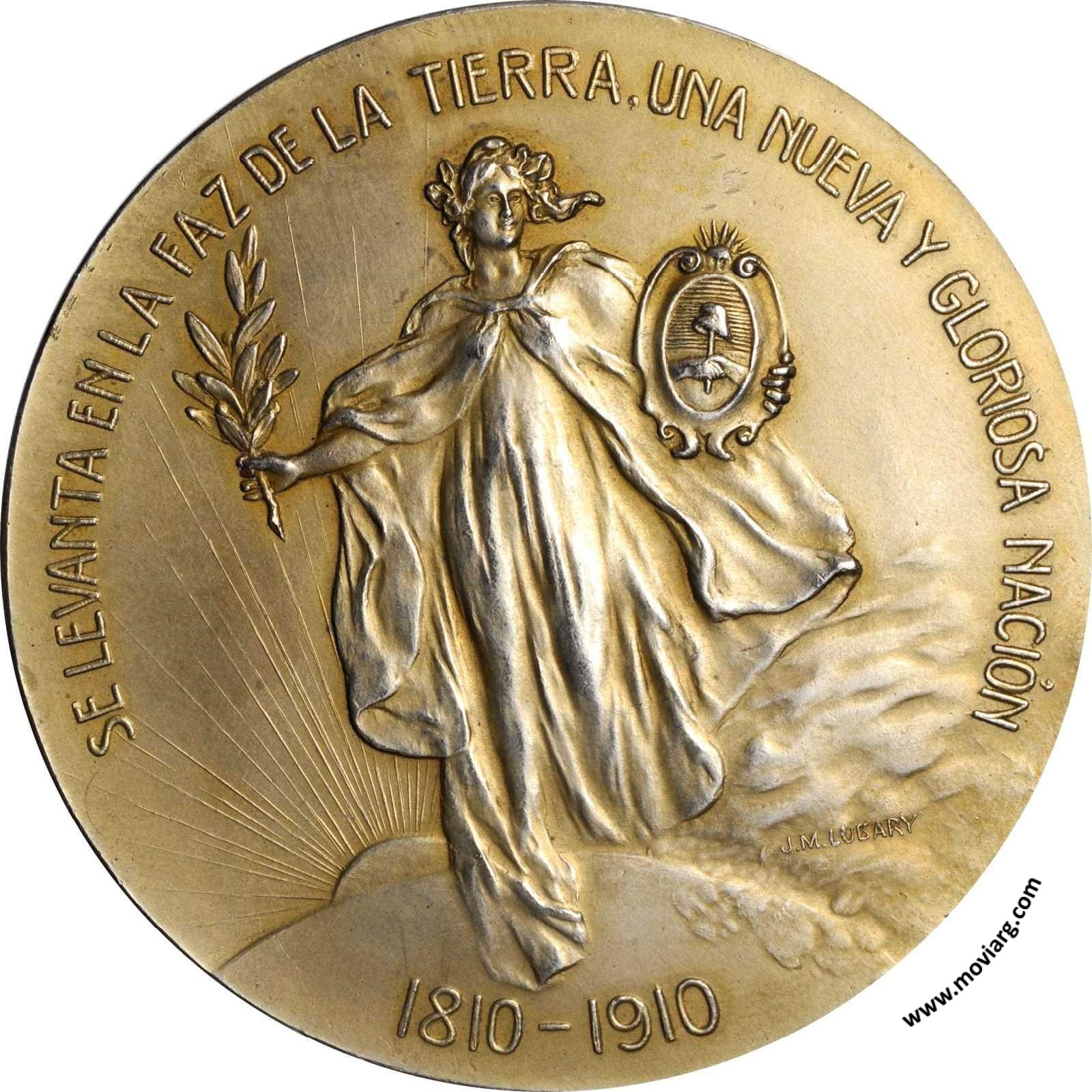stacksbowers Anverso: SE LEVANTA EN LA FAZ DE LA TIERRA, UNA NUEVA Y GLORIOSA NACIÓN / 1810 - 1910. Firma: J. M. LUBARYReverso: PREMIO OFRECIDO / POR / LA COMISIÓN NACIONAL / DEL / CENTENARIO / MAYO DE 1910 Referencia: | |
