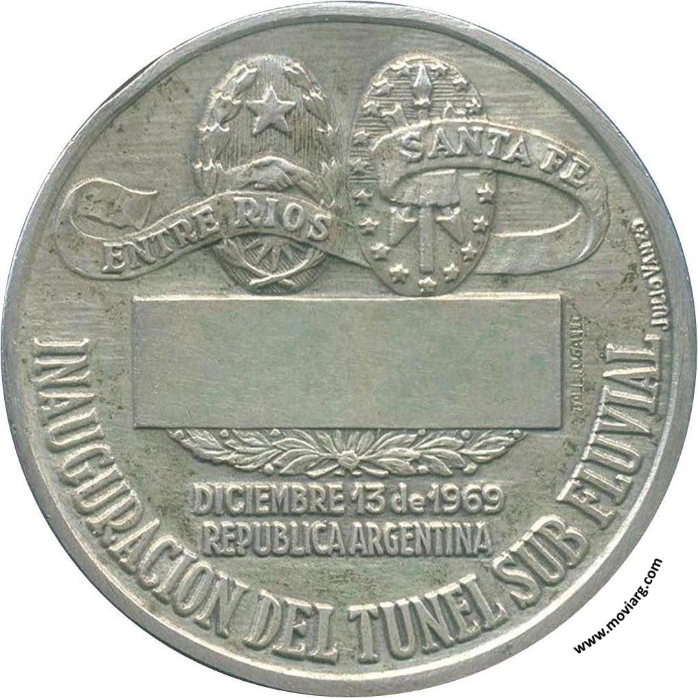Anverso: SANTA FE / PARANA Reverso: INAUGURACION DEL TUNEL SUB FLUVIAL / DICIEMBRE 13 DE 1969 / REPUBLICA ARGENTINA. Campo: ENTRE RIOS / SANTA FE. Firma: TALL. O. GALLO / JULIO VANZO Referencia: | |